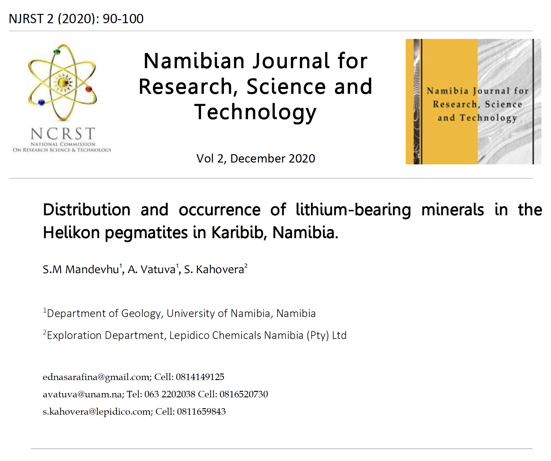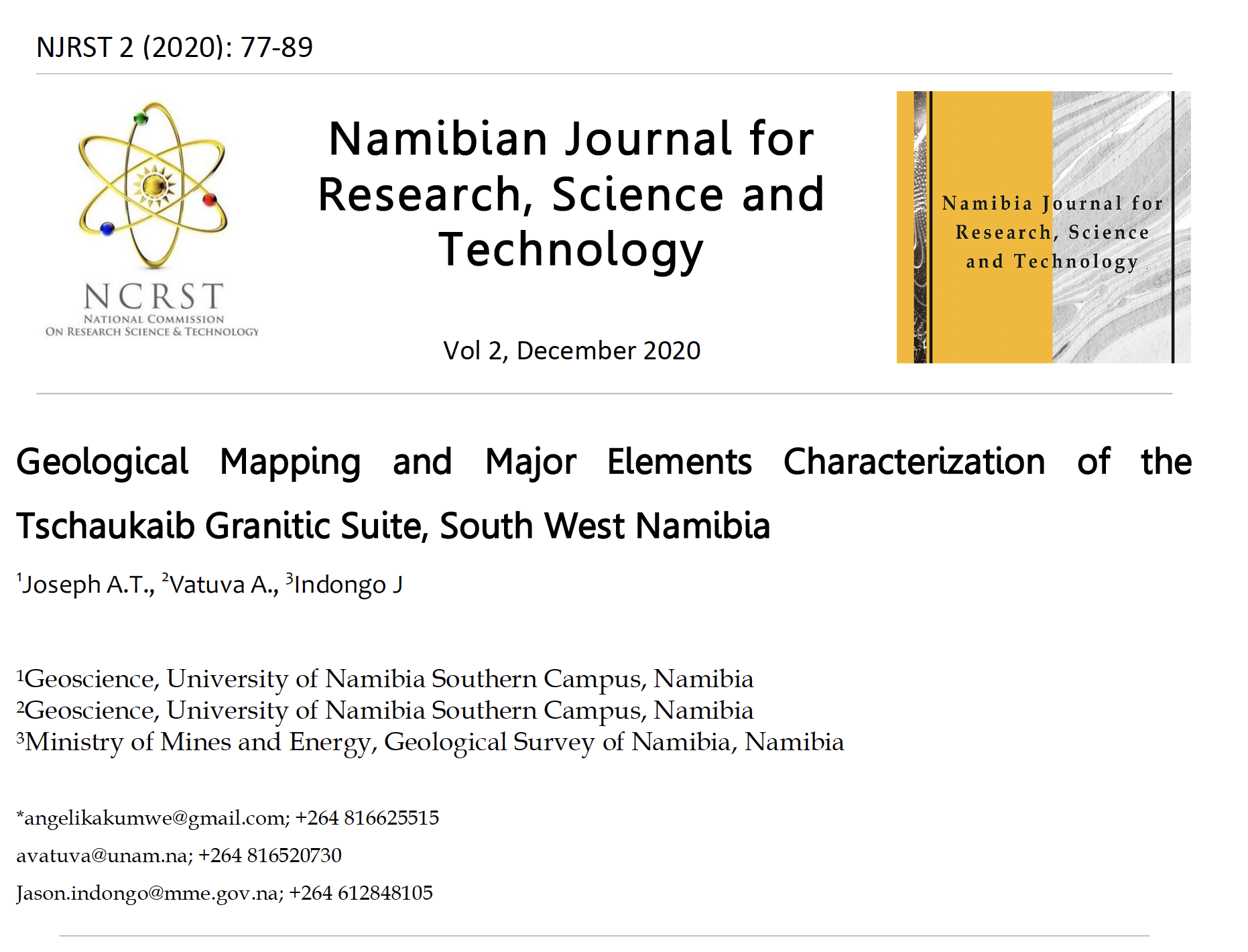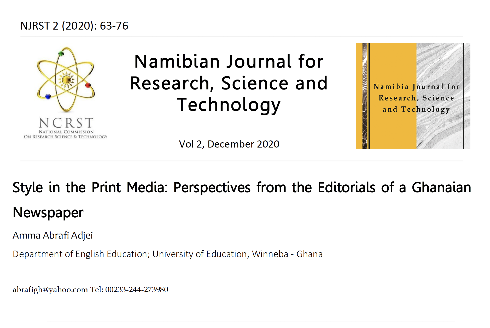 This speaks directly to what is contained in this volume. This is the second volume of NJRST. It is a good mix of research work reflecting a spectrum running from one pole of natural and allied sciences to the other pole of social sciences. The authors have demonstrated two things. First, that research has to be contextualized. Second, that research has to be contribute to policy. In other words, this volume demonstrates the core message of science for society. The few works summarized below clearly illustrate this.